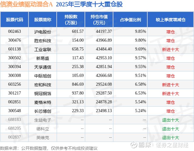 信澳业绩驱动混合A的前十大重仓股如下: