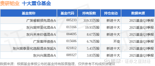 根据2025基金Q3季报公募基金重仓股数据,重仓该股的公募基金共6家,其中持有数量最多的公募基金为广发基金的广发睿毅领先混合A。广发睿毅领先混合A目前规模为12.27