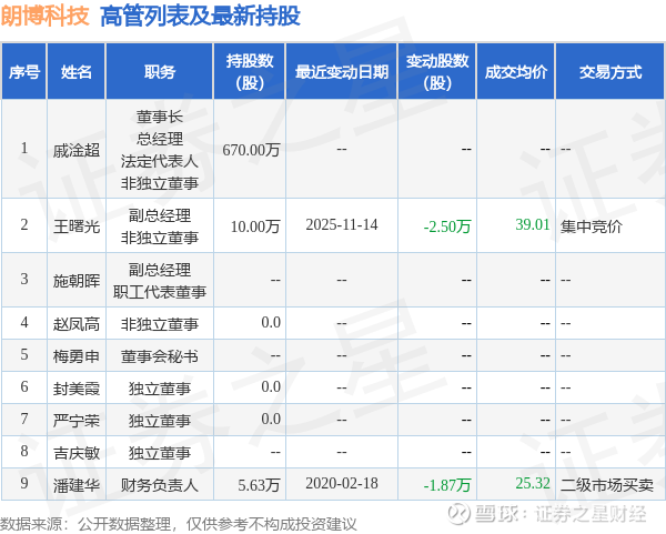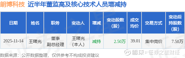 朗博科技近半年内的董监高及核心技术人员增减持详情如下: