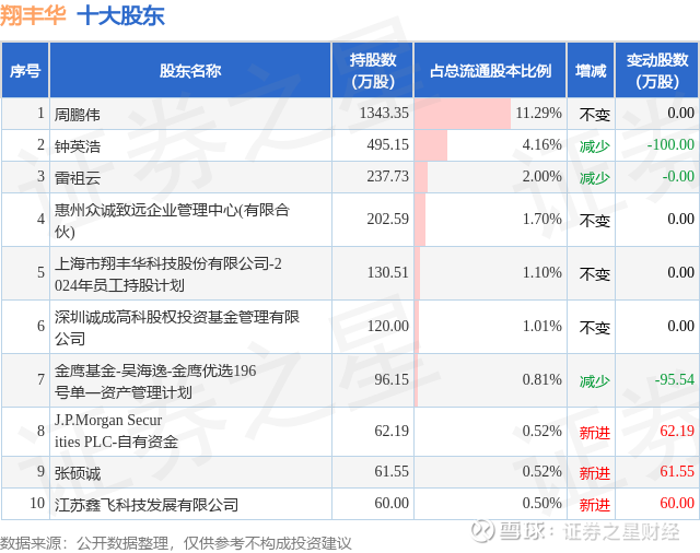 根据翔丰华2025年三季报公布的十大股东详情如下: