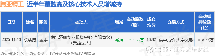 腾亚精工近半年内的董监高及核心技术人员增减持详情如下: