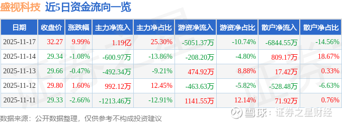 证券之星消息,盛视科技11月17日涨停收盘,收盘价32.27元。该股于14点47分涨停,2次打开涨停,截止收盘封单资金为985.21万元,占其流通市值0.23%。