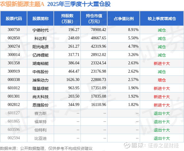 根据2025基金Q3季报公募基金重仓股数据,重仓该股的公募基金共43家,其中持有数量最多的公募基金为农银汇理基金的农银新能源主题A。农银新能源主题A目前规模为87.86亿元,最新净值2.9843(11月14日),较上一交易日下跌2.06%,近一年上涨22.63%。该公募基金现任基金经理为邢军亮 左腾飞。邢军亮在任的基金产品包括:农银行业轮动混合A,管理时间为2021年7月15日至今,期间收益率为42.13%;农银绿色能源混合,管理时间为2022年8月2日至今,期间收益率为-2.29%。