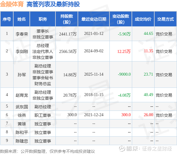 金陵体育近半年内的董监高及核心技术人员增减持详情如下: