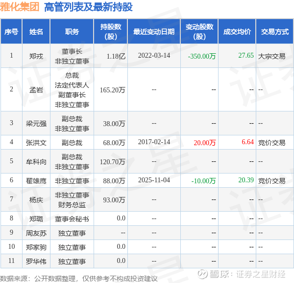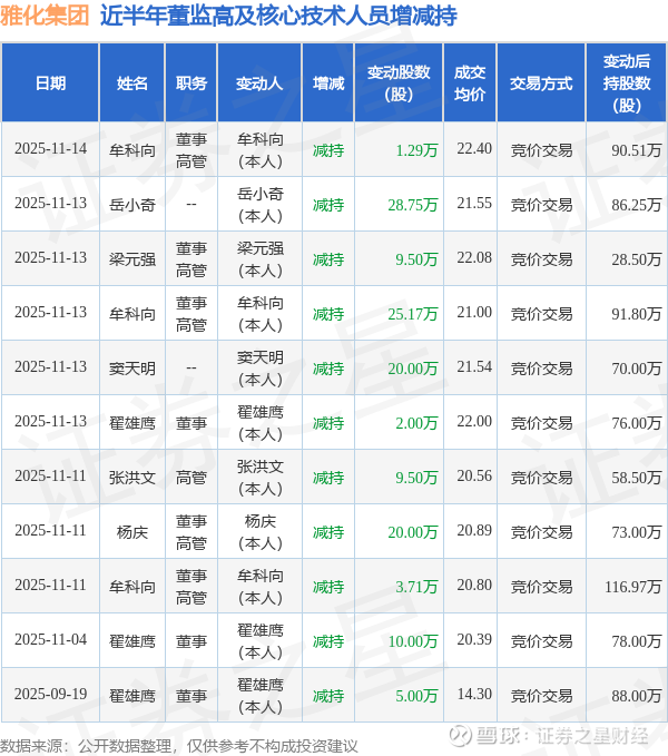 雅化集团近半年内的董监高及核心技术人员增减持详情如下: