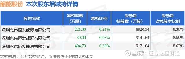证券之星消息,11月18日韶能股份发布公告《韶能股份:广东韶能集团股份有限公司关于持股5%以上股东累计权益变动触及1%整数倍的公告》,其股东深圳兆伟恒发能源有限公司于2025年11月11日至2025年11月17日间合计减持656.0万股,占公司目前总股本的0.6163%,变动期间该股股价下跌1.11%,截止11月17日收盘报5.35元。