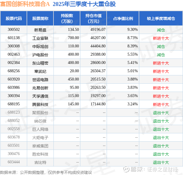 根据2025基金Q3季报公募基金重仓股数据,重仓该股的公募基金共13家,其中持有数量最多的公募基金为富国基金的富国创新科技混合A。富国创新科技混合A目前规模为37.81亿元,最新净值2.462(11月18日),较上一交易日上涨0.74%,近一年上涨95.24%。该公募基金现任基金经理为罗擎。