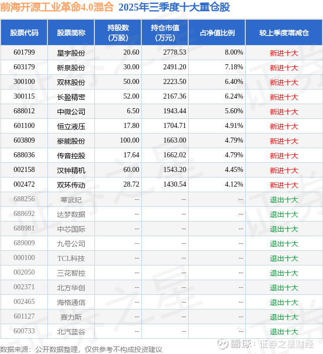 前海开源工业革命4.0混合的前十大重仓股如下: