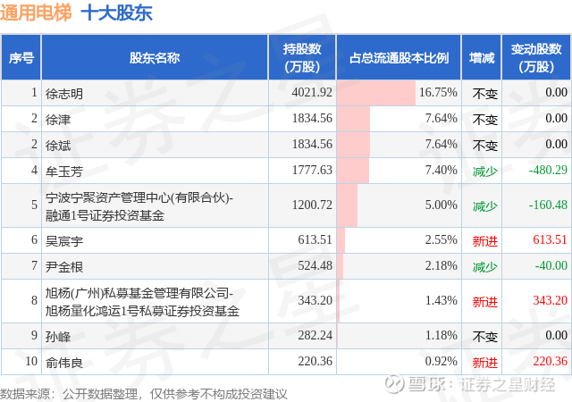 根据通用电梯2025年三季报公布的十大股东详情如下: