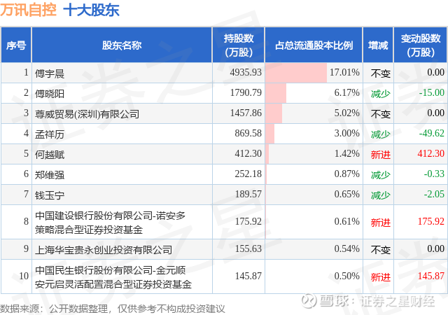 根据万讯自控2025年三季报公布的十大股东详情如下: