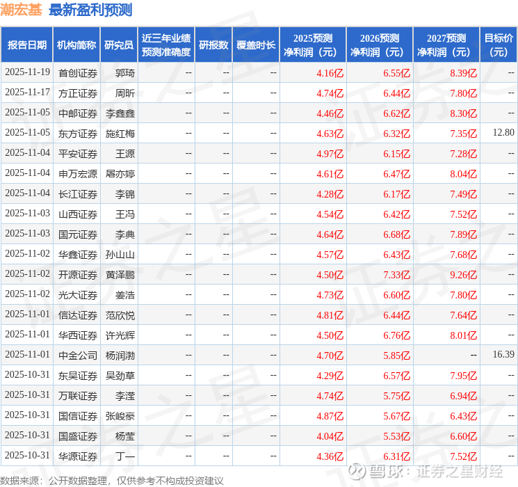 以下是详细的盈利预测信息: