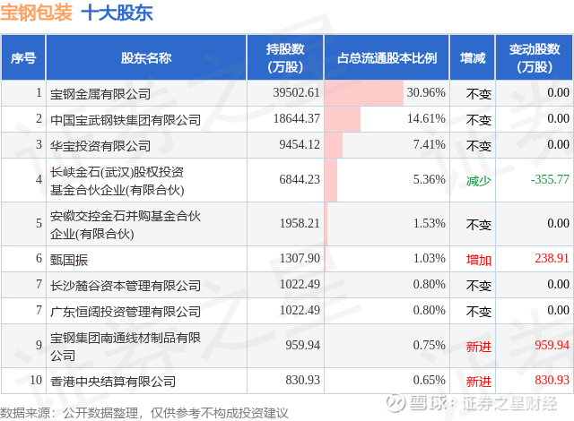 根据宝钢包装2025年三季报公布的十大股东详情如下:
