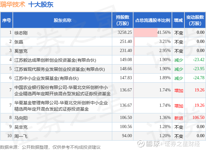 根据瑞华技术2025年三季报公布的十大股东详情如下: