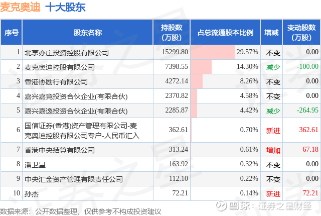 根据麦克奥迪2025年三季报公布的十大股东详情如下: