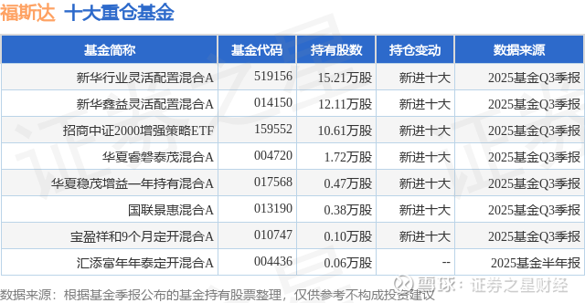 重仓福斯达的公募基金请见下表: