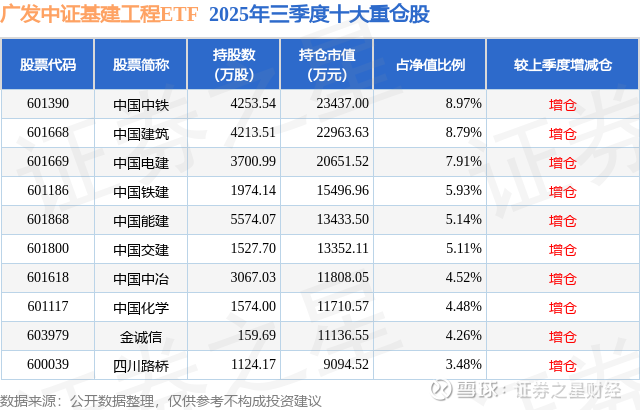 广发中证基建工程ETF的前十大重仓股如下: