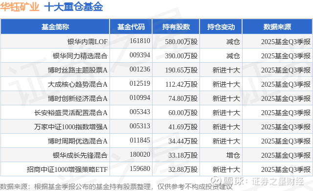 根据2025基金Q3季报公募基金重仓股数据,重仓该股的公募基金共26家,其中持有数量最多的公募基金为银华基金的银华内需LOF。银华内需LOF目前规模为17.2亿元,最新净值3.789(11月20日),较上一交易日下跌0.86%,近一年上涨46.97%。该公募基金现任基金经理为刘辉 王利刚。刘辉在任的基金产品包括:银华同力精选混合,管理时间为2020年6月16日至今,期间收益率为22.16%;银华创业板两年定期开放混合,管理时间为2020年8月7日至今,期间收益率为-22.45%。王利刚在任的基金产品包括:银华成长先锋混合,管理时间为2019年12月31日至今,期间收益率为19.92%;银华创业板两年定期开放混合,管理时间为2020年8月7日至今,期间收益率为-22.45%;银华同力精选混合,管理时间为2021年4月26日至今,期间收益率为23.37%;
