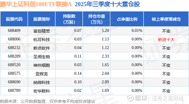 鹏华上证科创100ETF联接A的前十大重仓股如下: