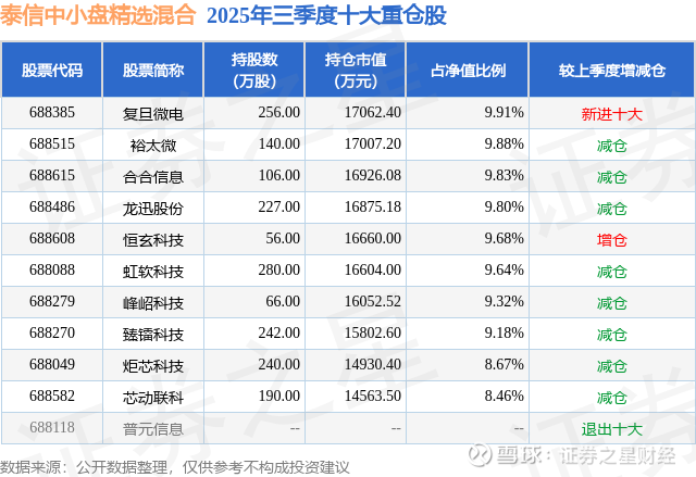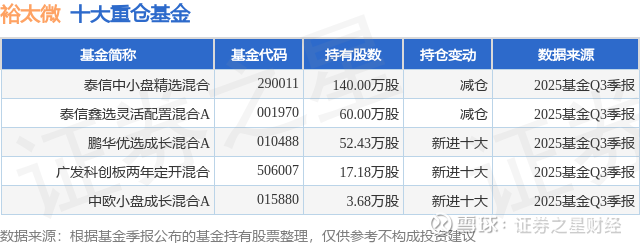 根据2025基金Q3季报公募基金重仓股数据,重仓该股的公募基金共5家,其中持有数量最多的公募基金为泰信基金的泰信中小盘精选混合。泰信中小盘精选混合目前规模为17.22亿元,最新净值4.052(11月20日),较上一交易日下跌1.58%,近一年上涨31.56%。该公募基金现任基金经理为董季周。董季周在任的基金产品包括:泰信鑫选灵活配置混合A,管理时间为2020年11月24日至今,期间收益率为5.61%。