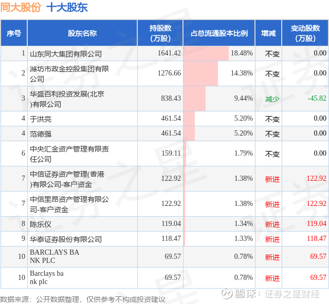 根据同大股份2025年三季报公布的十大股东详情如下: