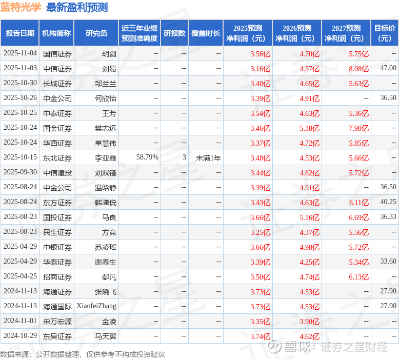 以下是详细的盈利预测信息: