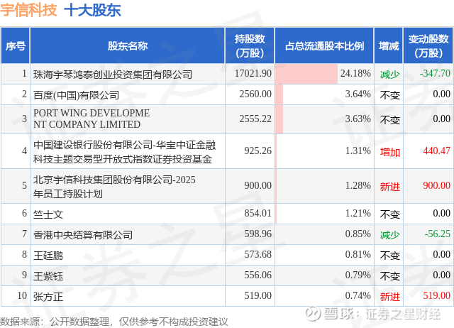 根据宇信科技2025年三季报公布的十大股东详情如下: