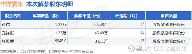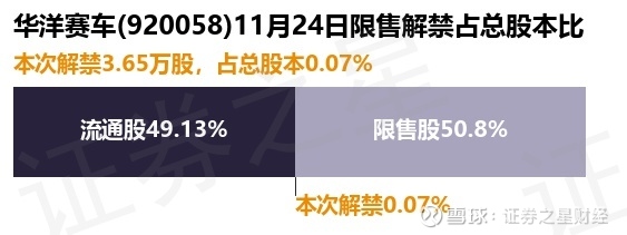 证券之星消息,根据市场公开信息整理,华洋赛车(920058)于11月24日将有3.65万股限售股份解禁,为公司股权激励限售股份,占公司总股本0.07%。(本次数据根据历史公告整理得出,实际情况以上市公司最新公告为准)最近一年内,该股累计解禁1355.0万股,占总股本的24.16%。本次解禁后,公司还有2849.27万股限售股份,占总股本50.8%。具体如下图所示: