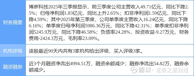2025年10月29日,中邮证券研究员孙业亮,刘聪颖发布了对博彦科技的研报《AI+数字化业绩稳健,新拓行业业务进展显著》,该研报对博彦科技给出“买入”评级。研报中预计公司2025-2027年EPS分别为0.37\0.45\0.52元,对应公司10月28日收盘价13.54元,2025-2027年PE分别为36.36\29.97\25.88,维持“买入”评级。风险提示:证券之星数据中心根据近三年发布的研报数据计算,该研报作者对此股的盈利预测准确度为9.95%。
