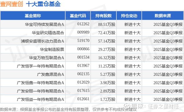 根据2025基金Q3季报公募基金重仓股数据,重仓该股的公募基金共10家,其中持有数量最多的公募基金为华宝基金的华宝可持续发展混合A。华宝可持续发展混合A目前规模为5.12亿元,最新净值1.0195(11月21日),较上一交易日下跌3.3%,近一年上涨24.77%。该公募基金现任基金经理为贺喆。贺喆在任的基金产品包括:华宝制造股票,管理时间为2018年8月24日至今,期间收益率为151.45%;华宝研究精选混合,管理时间为2021年12月21日至今,期间收益率为-3.86%。