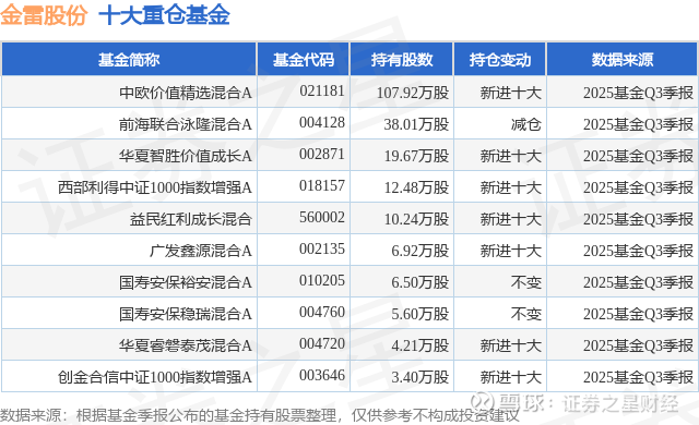 根据2025基金Q3季报公募基金重仓股数据,重仓该股的公募基金共16家,其中持有数量最多的公募基金为中欧基金的中欧价值精选混合A。中欧价值精选混合A目前规模为4.22亿元,最新净值1.3391(11月21日),较上一交易日下跌3.03%。该公募基金现任基金经理为张学明。张学明在任的基金产品包括:中欧景气精选混合A,管理时间为2024年4月23日至今,期间收益率为51.57%;中欧品质精选混合A,管理时间为2024年6月18日至今,期间收益率为18.46%;中欧红利精选混合发起A,管理时间为2024年7月26日至今,期间收益率为22.54%。