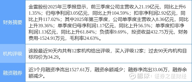 2025年10月29日,国金证券研究员姚遥发布了对金雷股份的研报《出货延续高增,盈利持续改善》,该研报对金雷股份给出“买入”评级。研报中预测公司2025-2027年归母净利润分别为4.4、5.7、6.9亿元,对应PE为23、17、14倍,维持“买入”评级。证券之星数据中心根据近三年发布的研报数据计算,该研报作者对此股的盈利预测准确度为24.24%。