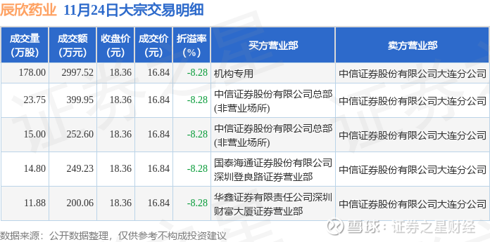 证券之星消息,11月24日辰欣药业发生大宗交易,交易数据如下: