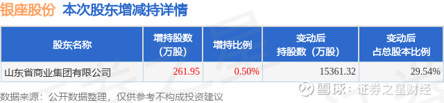 证券之星消息,11月24日银座股份发布公告《银座股份:银座股份关于控股股东及一致行动人权益变动触及1%刻度暨增持计划进展的提示性公告》,其股东山东省商业集团有限公司于2025年9月22日至2025年11月24日间合计增持261.95万股,占公司目前总股本的0.5037%,变动期间该股股价下跌4.45%,截止11月24日收盘报5.58元。