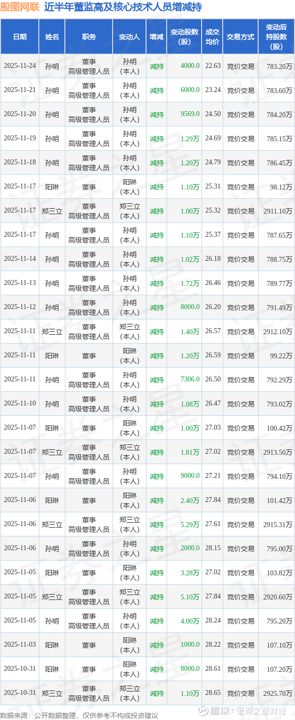 殷图网联近半年内的董监高及核心技术人员增减持详情如下: