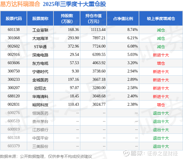 根据2025基金Q3季报公募基金重仓股数据,重仓该股的公募基金共6家,其中持有数量最多的公募基金为易方达基金的易方达科瑞混合。易方达科瑞混合目前规模为12.71亿元,最新净值2.0417(11月24日),较上一交易日下跌0.46%,近一年上涨19.95%。该公募基金现任基金经理为杨嘉文。杨嘉文在任的基金产品包括:易方达科汇灵活配置混合,管理时间为2019年11月28日至今,期间收益率为113.48%;易方达逆向投资混合A,管理时间为2021年4月1日至今,期间收益率为19.77%;易方达均衡优选一年持有混合A,管理时间为2022年5月26日至今,期间收益率为38.83%。
