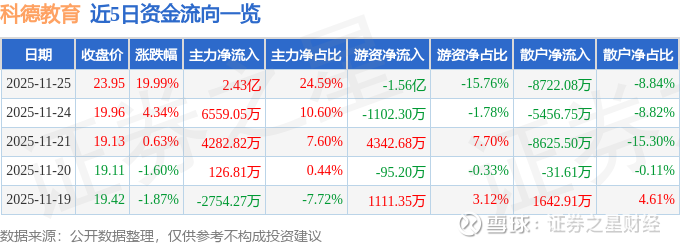 11月25日的资金流向数据方面,主力资金净流入2.43亿元,占总成交额24.59%,游资资金净流出1.56亿元,占总成交额15.76%,散户资金净流出8722.08万元,占总成交额8.84%。