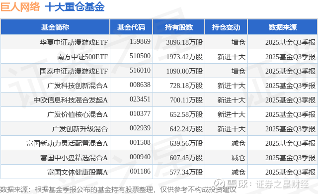 根据2025基金Q3季报公募基金重仓股数据,重仓该股的公募基金共240家,其中持有数量最多的公募基金为华夏基金的华夏中证动漫游戏ETF。华夏中证动漫游戏ETF目前规模为106.97亿元,最新净值1.3837(11月24日),较上一交易日上涨3.15%,近一年上涨32.88%。该公募基金现任基金经理为鲁亚运。鲁亚运在任的基金产品包括:华夏创业板成长ETF联接A,管理时间为2022年6月10日至今,期间收益率为-9.84%;华夏中证全指证券公司ETF联接A,管理时间为2022年6月10日至今,期间收益率为26.38%;华夏国证疫苗与生物科技指数发起A,管理时间为2022年9月6日至今,期间收益率为-32.58%;华夏战略新兴成指ETF联接A,管理时间为2023年3月27日至今,期间收益率为18.15%。
