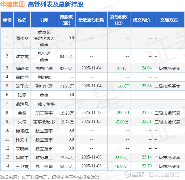 华建集团的高管列表及最新持股情况如下: