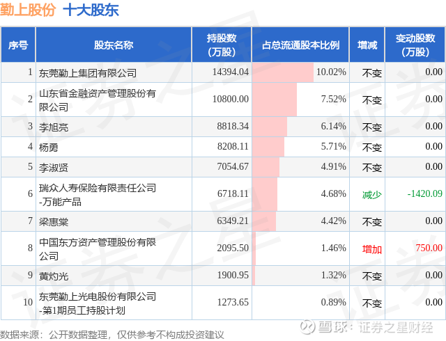 根据勤上股份2025年三季报公布的十大股东详情如下: