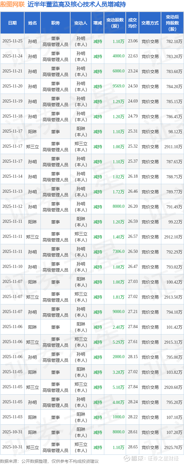 殷图网联近半年内的董监高及核心技术人员增减持详情如下: