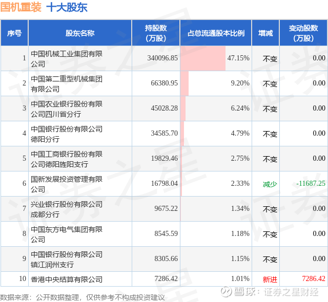 根据国机重装2025年三季报公布的十大股东详情如下:
