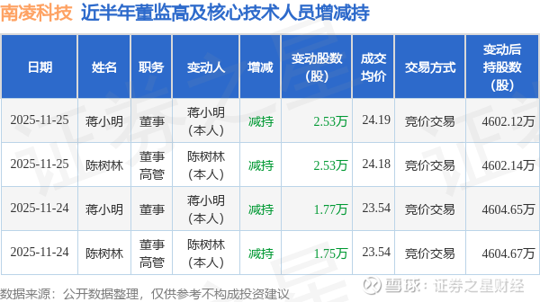 南凌科技近半年内的董监高及核心技术人员增减持详情如下: