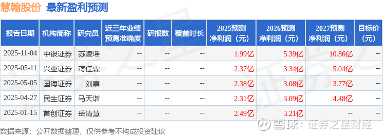 以下是详细的盈利预测信息: