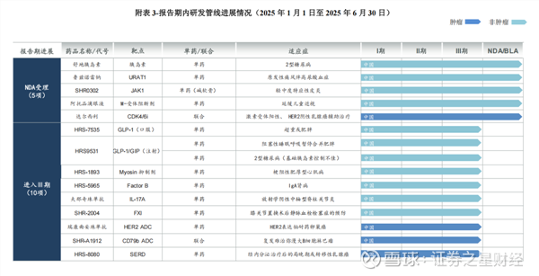 另据西南证券统计,自中报披露以来,公司上市药品:1)中国首个自主研发的口服降糖三药联合固定复方制剂恒格列净瑞格列汀二甲双胍缓释片;2)卡瑞利珠单抗联合苹果酸法米替尼用于复发或转移性宫颈癌患者的一线治疗;3)氟唑帕利联用治疗 DRD+的转移性去势抵抗性前列腺癌的一线治疗。获批临床试验:1)获批瑞康曲妥珠单抗单药对比多西他赛+卡铂+曲妥珠单抗+帕妥珠单抗新辅助治疗 HER2+乳腺癌的III期临床研究。2)SHR-A2102(nectin-4 ADC)、 SHR-7787(DLL3 ADC)获批开展II期临床。3)SHR-A2102 联合疗法IB/II期临床。4)SHR-1905、HRS-2329、SHR-4298、 HRS-2129 获批开展临床试验。