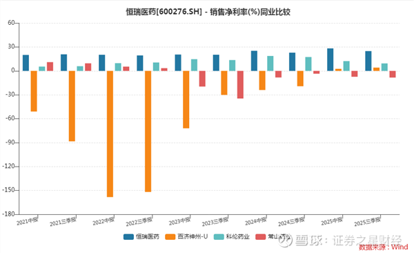 与许多创新药公司仍在亏损,还没有形成自我造血能力不同。恒瑞医药近年的销售净利率都在20%以上,在行业中表现突出。