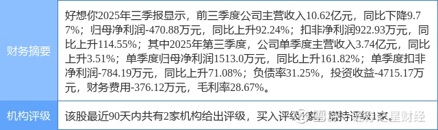 2025年11月3日,华鑫证券研究员孙山山,张倩发布了对好想你的研报《公司事件点评报告:省外商超进展顺利,盈利端持续改善》,该研报对好想你给出“买入”评级。研报中预计2025-2027年EPS分别为0.01/0.17/0.27(前值为0.02/0.17/0.27)元,当前股价对应PE分别为843/57/37倍,维持“买入”投资评级。证券之星数据中心根据近三年发布的研报数据计算,该研报作者对此股的盈利预测准确度为16.57%。
