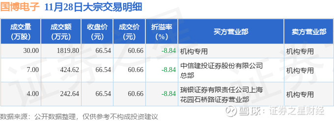 证券之星消息,11月28日国博电子发生大宗交易,交易数据如下: