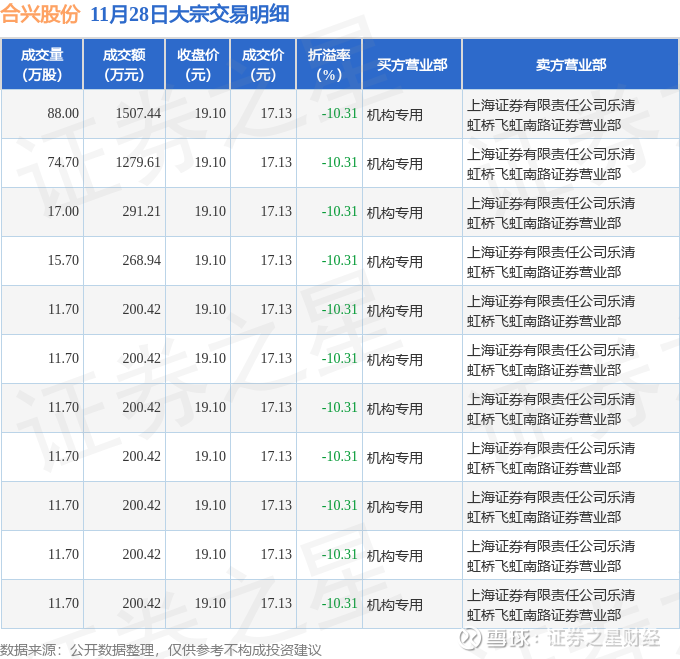证券之星消息,11月28日合兴股份发生大宗交易,交易数据如下: