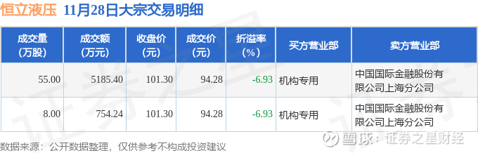 证券之星消息,11月28日恒立液压发生大宗交易,交易数据如下: