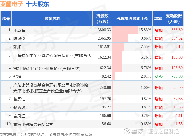 根据蓝箭电子2025年三季报公布的十大股东详情如下: